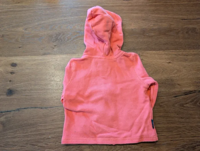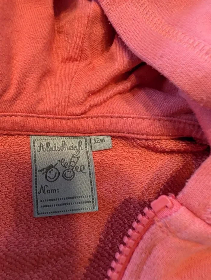Gilet zippé rose, marque A l'aise Breizh, taille 12 mois. En bon état car un peu bouloché.