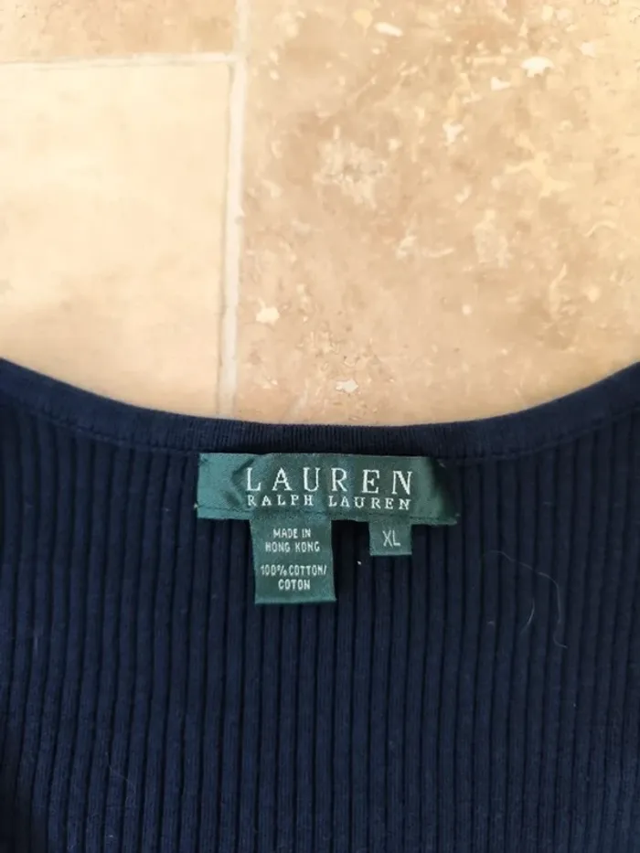 Magnifique pull col V femme XL marine Lauren Ralph Lauren épaulettes excellent état - photo numéro 10
