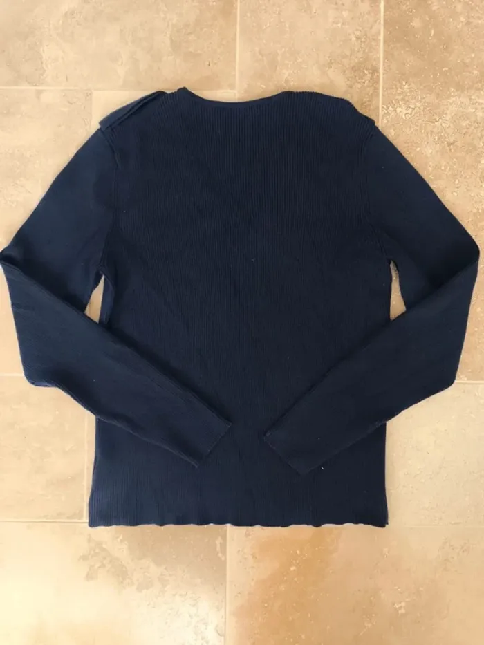 Magnifique pull col V femme XL marine Lauren Ralph Lauren épaulettes excellent état - photo numéro 3