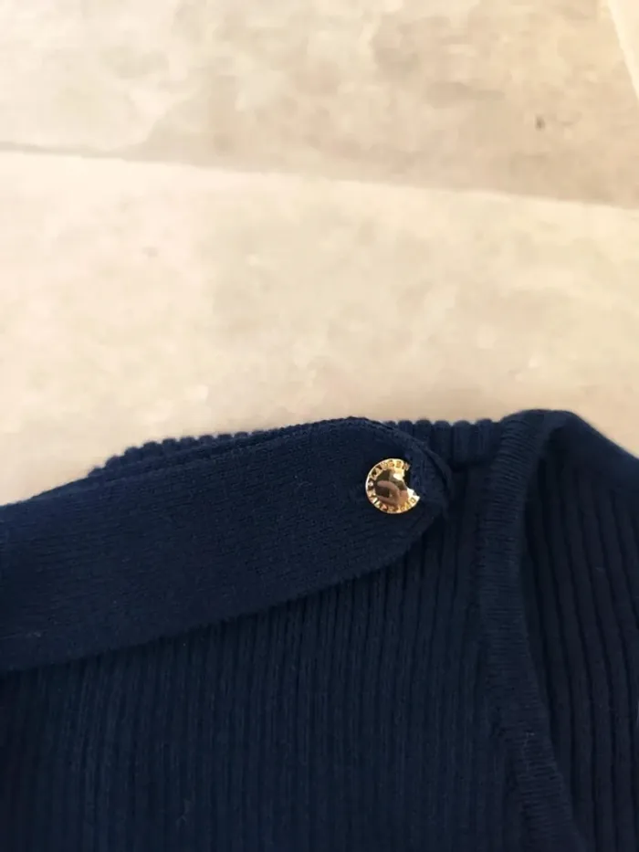 Magnifique pull col V femme XL marine Lauren Ralph Lauren épaulettes excellent état - photo numéro 4