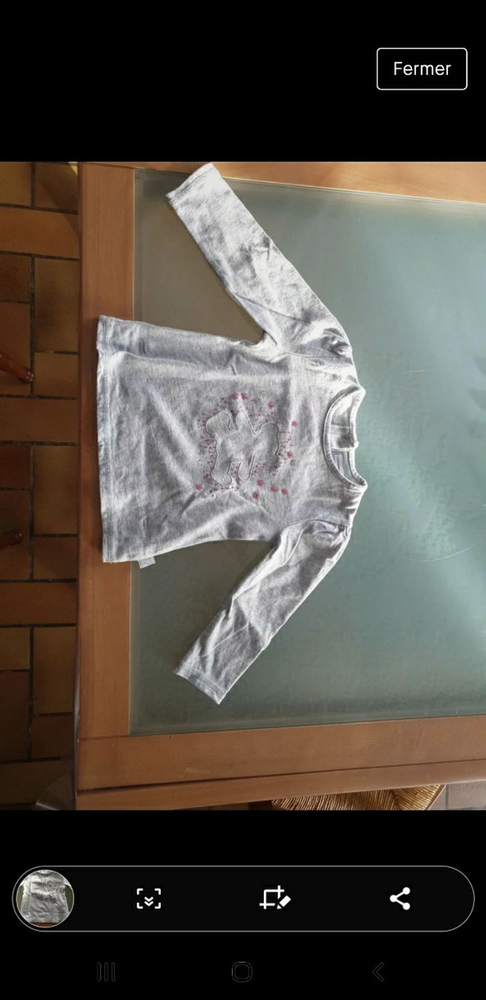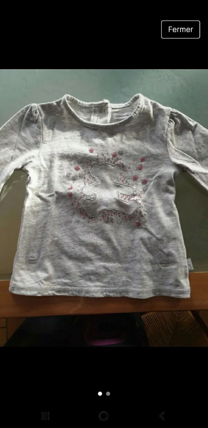 T-shirt gris manches longues lulu castagnette avec dessin ours sur le devant avec paillettes roses et grises très peu porté 24 mois