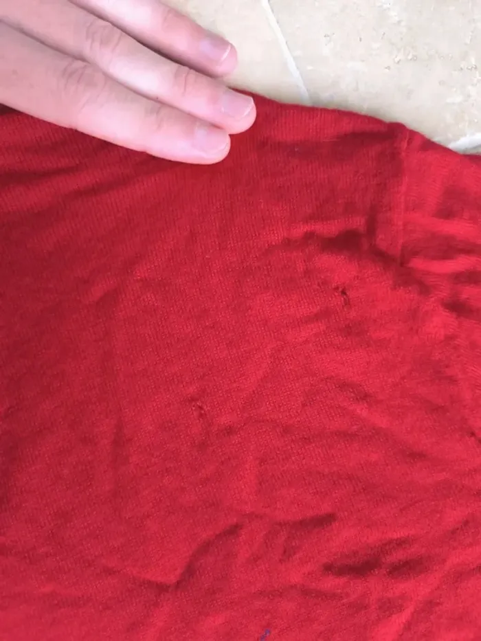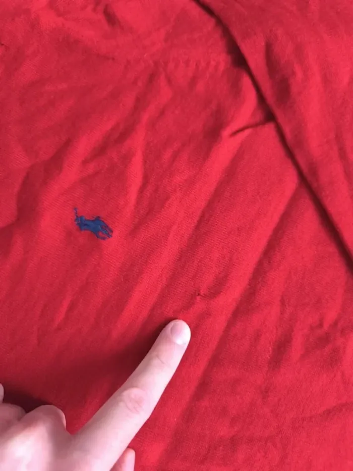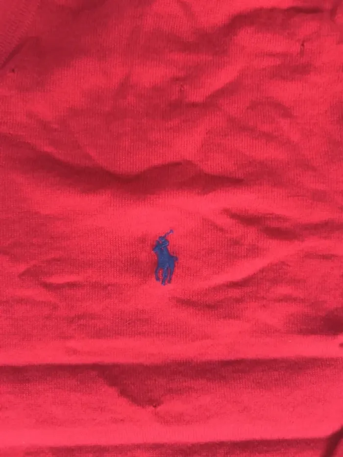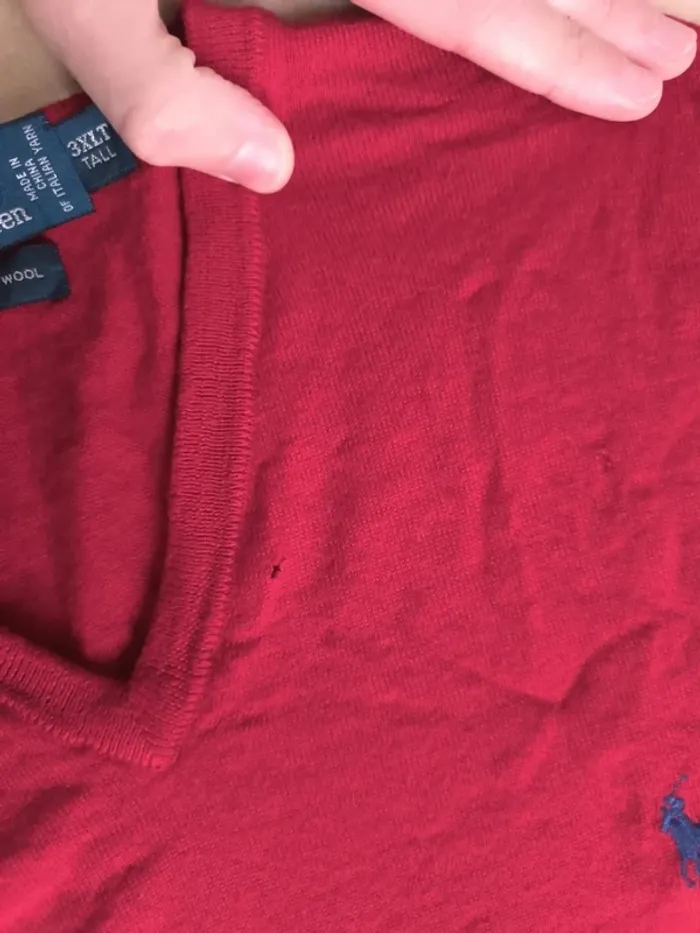 Pull col V rouge logo bleu Ralph Lauren homme 3XLT plusieurs trous, laine mérino - photo numéro 13