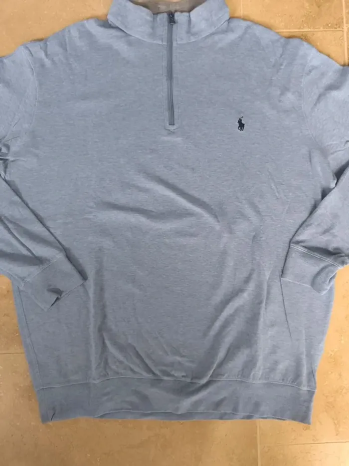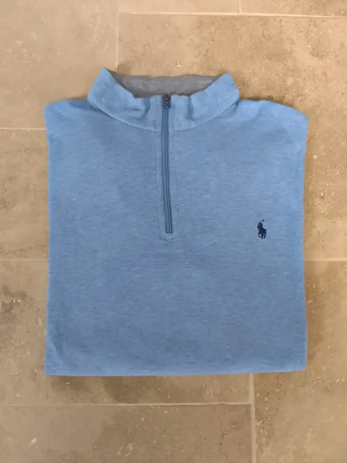 Magnifique pull 1/4 zip bleu clair chiné XLT Ralph Lauren - photo numéro 1