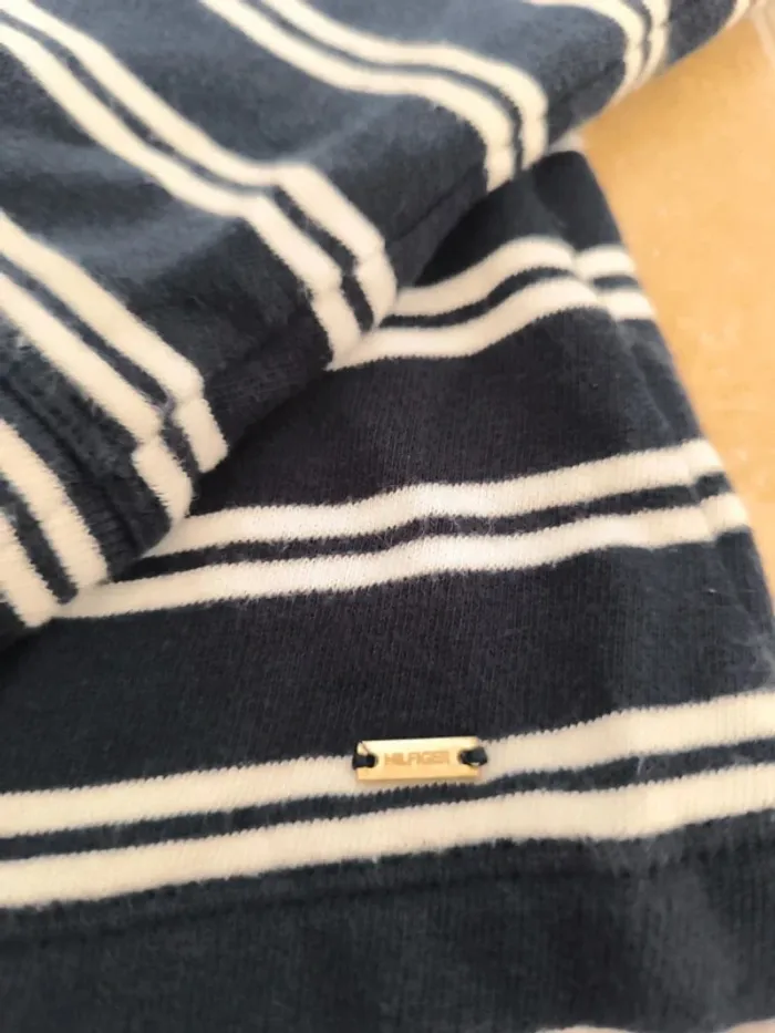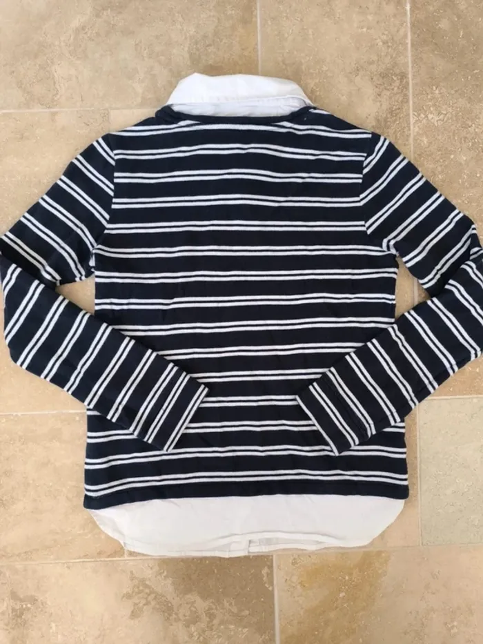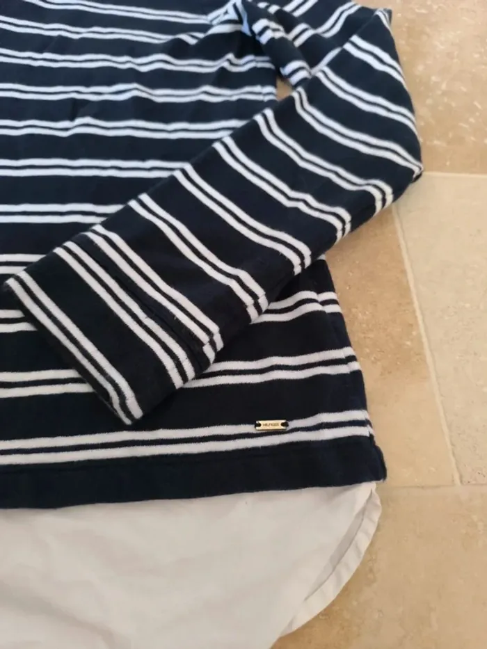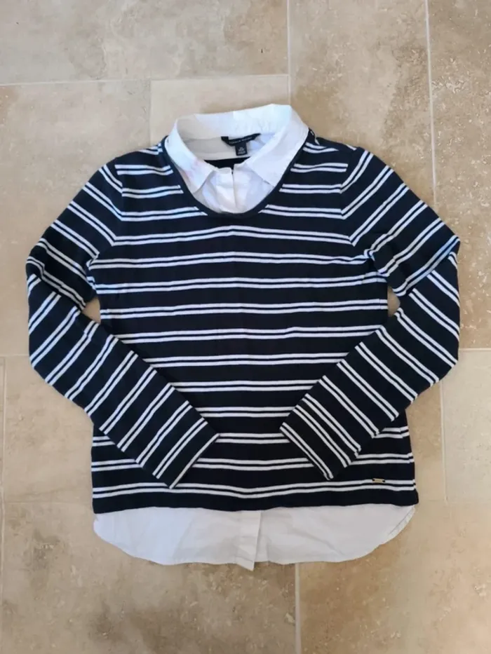 Pull rayures tommy Hilfiger femme marine et blanc avec sous chemise blanche, col tâché taille XS - photo numéro 1