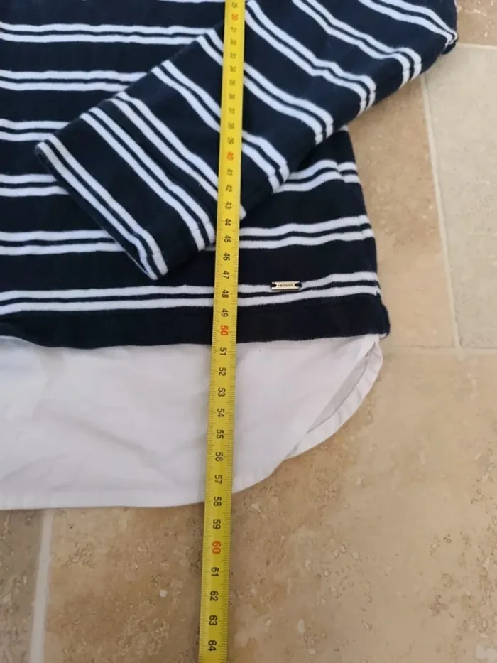 Pull rayures tommy Hilfiger femme marine et blanc avec sous chemise blanche, col tâché taille XS - photo numéro 3
