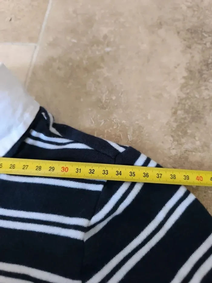 Pull rayures tommy Hilfiger femme marine et blanc avec sous chemise blanche, col tâché taille XS - photo numéro 10