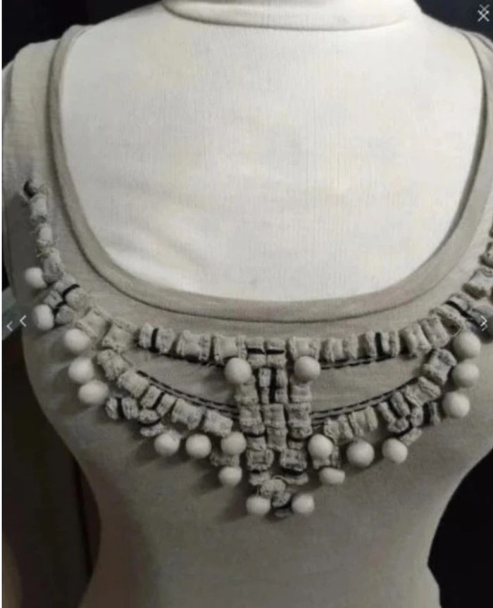Gris Taupe Décoration pompons parfait pour cet été débardeur forme basic
