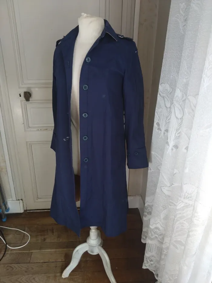 Trench bleu marine T 36 38 – style anglais imperméable, vintage - photo numéro 2