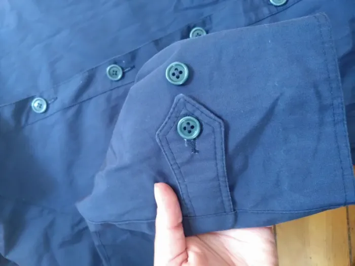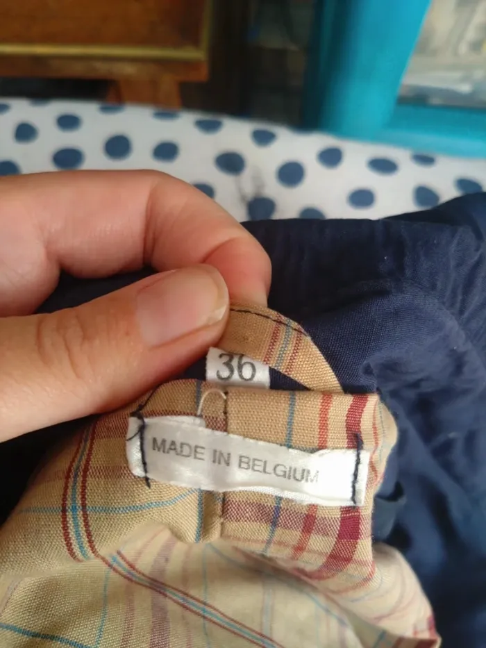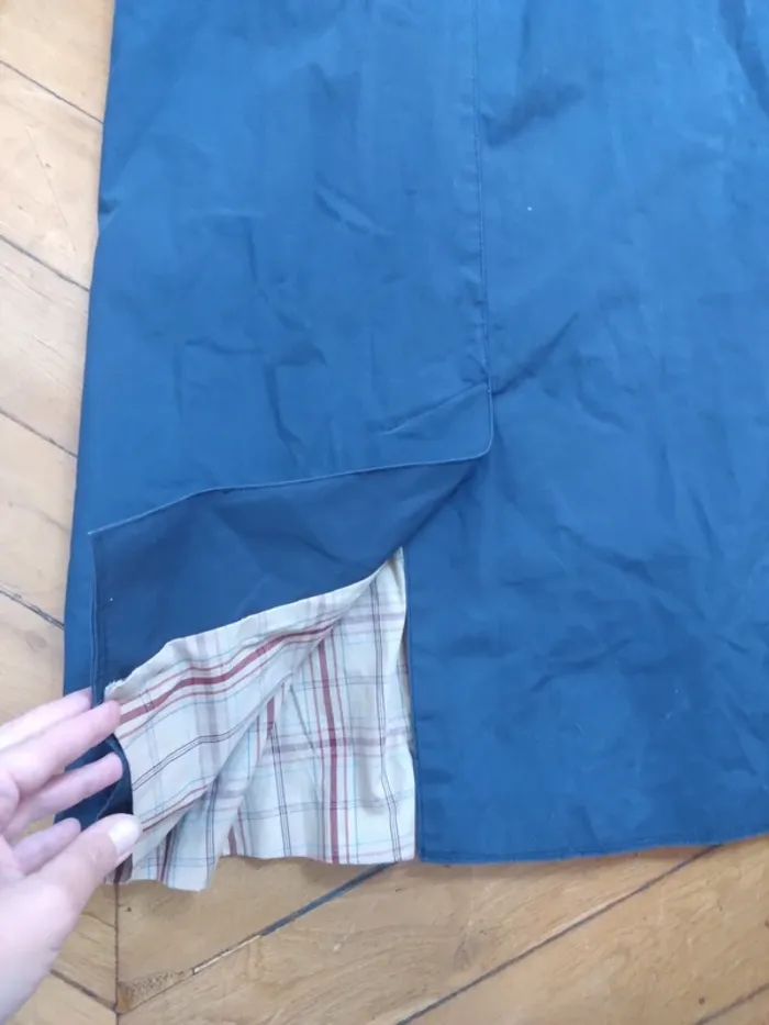 Trench imperméable bleu marine, coupe mi-longue. Style anglais rétro façon Burberry, fabrication belge, matière 35 % coton. Présence d'un accroc voir photo Fabrication belge, gage de belle qualité et de coupe soignée. Pièce polyvalente : parfaite pour un look urbain chic, rétro ou professionnel. #Trench #StyleAnglais #LookChic #ModeVintage #Imperméable #BurberryStyle #MadeInBelgium #ModeFemme #TrenchMarine #MiSaison