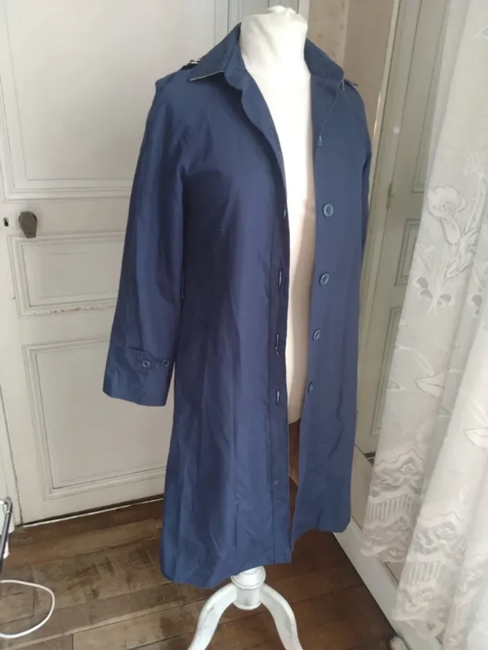 Trench bleu marine T 36 38 – style anglais imperméable, vintage - photo numéro 9