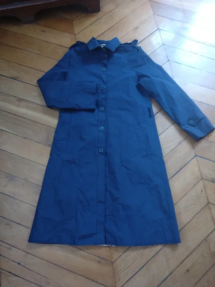 Trench bleu marine T 36 38 – style anglais imperméable, vintage - photo numéro 14