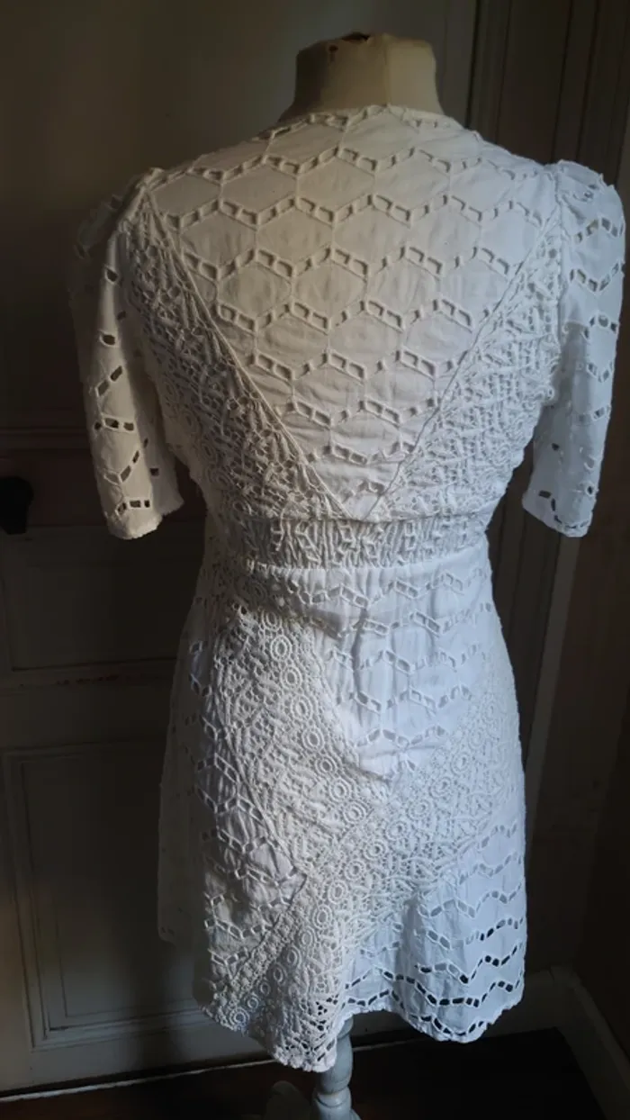 Robe d'été courte The Kooples T34 blanche dentelle 100% coton - photo numéro 7