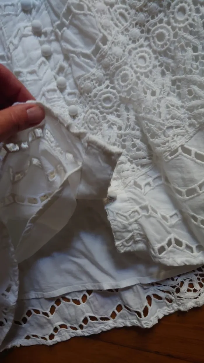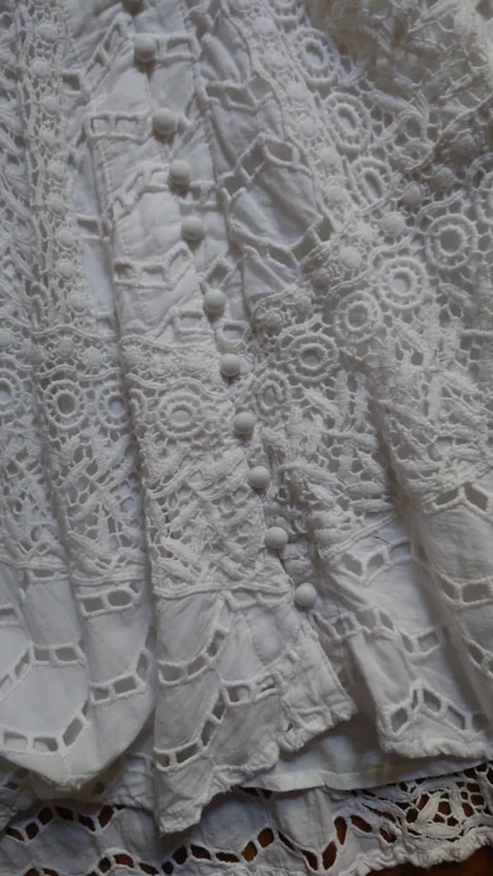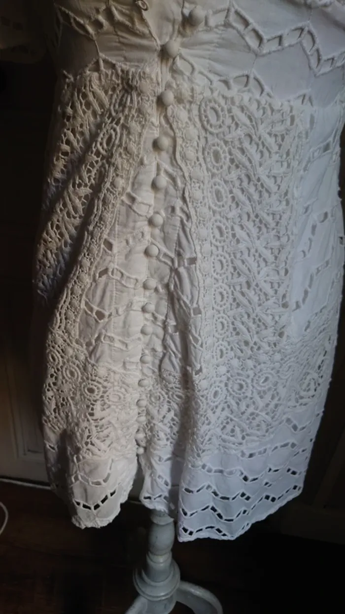 Parfaite pour mariages, soirées d’été ou événements chics, avec col en V et boutons sur le devant. Doublure style bohème chic 100 % coton #TheKooples #RobeBohème #RobeDentelle #RobeBlanche #RobeÉté #Mariage #Cocktail #RobeChic #LookFéminin #VintedFrance #TheKooplesaddict #TheKooplesdress
