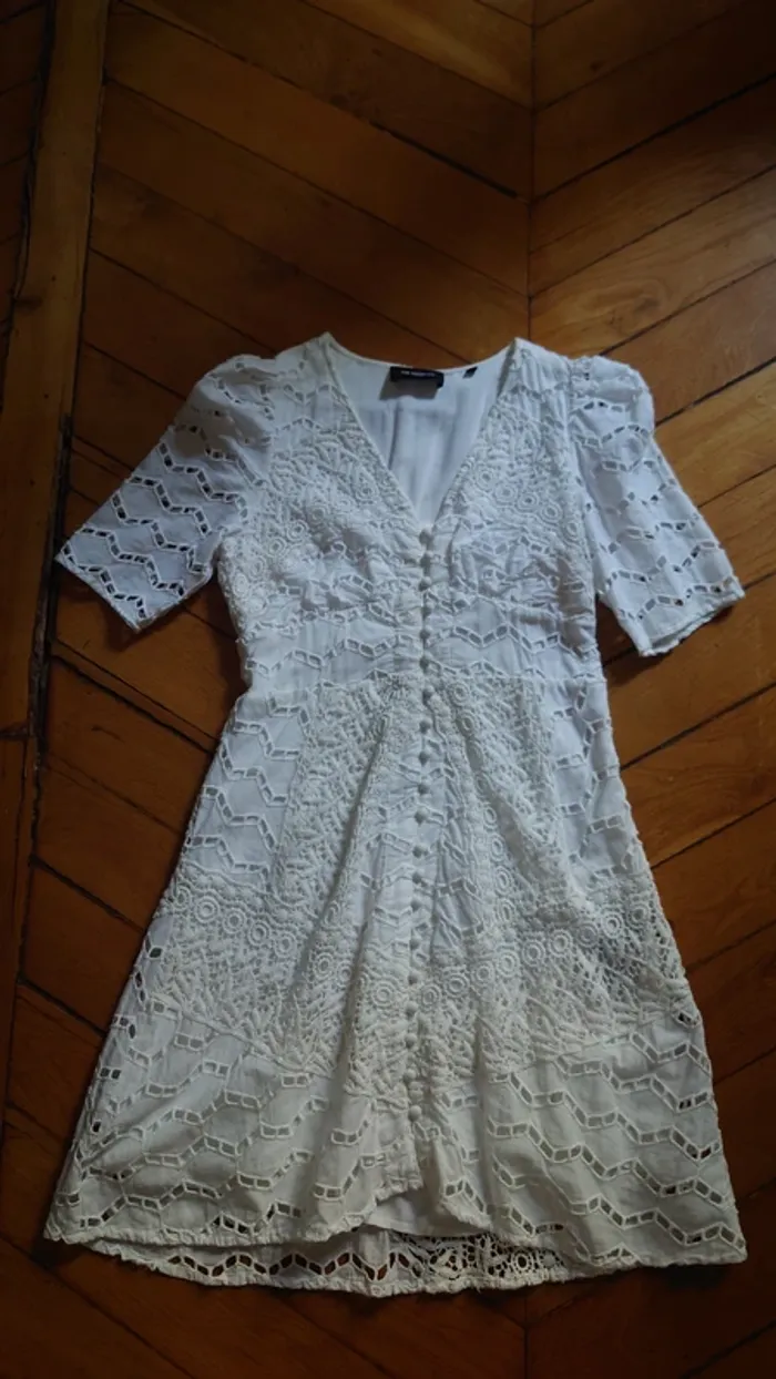 Robe d'été courte The Kooples T34 blanche dentelle 100% coton - photo numéro 1