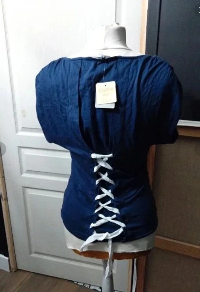T shirt neuf marine Etam t 34 36 a lacets - photo numéro 2