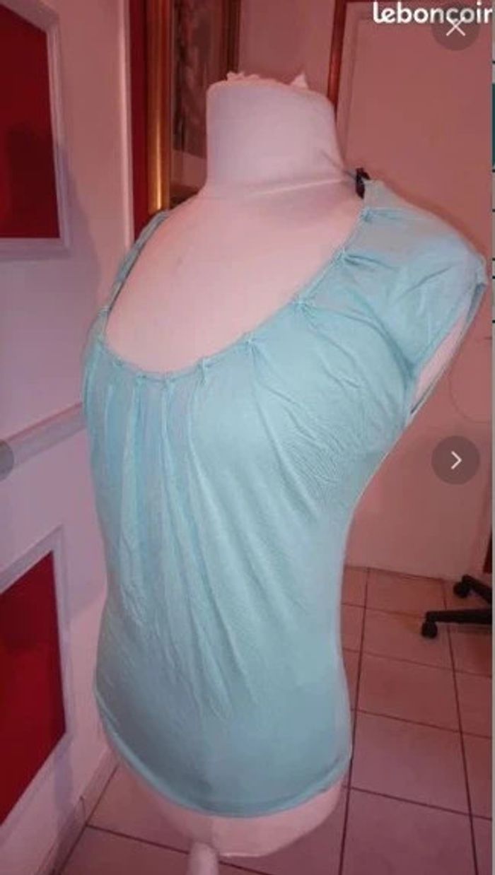 Top t shirt haut d'été neuf t 34 36 bleu clair morgan - photo numéro 3