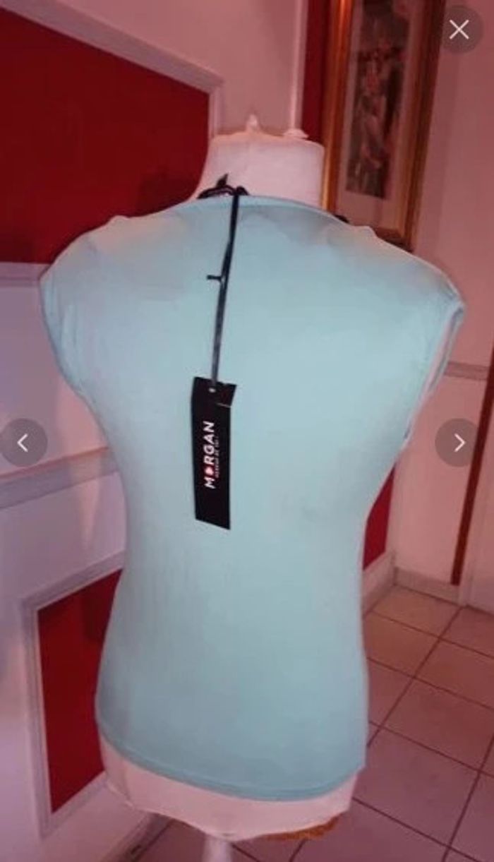 Top t shirt haut d'été neuf t 34 36 bleu clair morgan - photo numéro 4