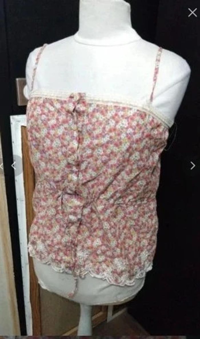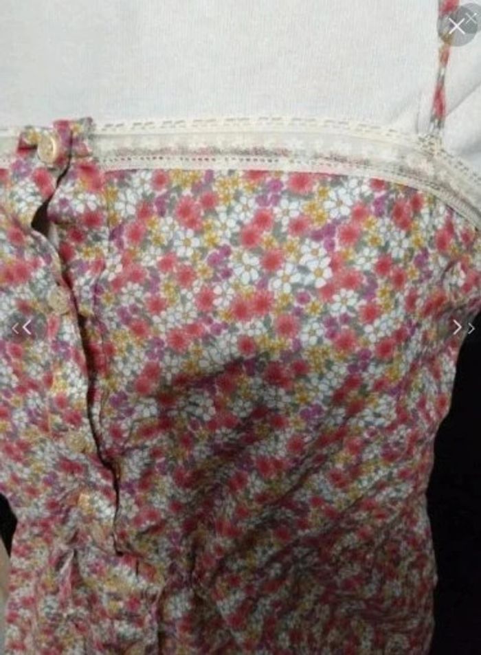 Style rétro Fleuries avec dentelles écrues Jamais porté parfait pour cet été, vacances, travail, mariage, bapteme, cocktail Style boheme retro Lien a resserrer a la taille ou pas Pointe de couture à prévoir sur une des bretelles voir photo blouse avec boutons sur le devant fines bretelles