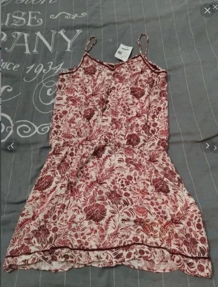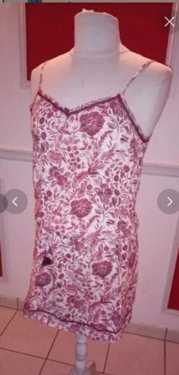 Robe de plage été vacances Encore étiquetée Bretelles Robe blanche motifs tropical fleurs Bordeaux