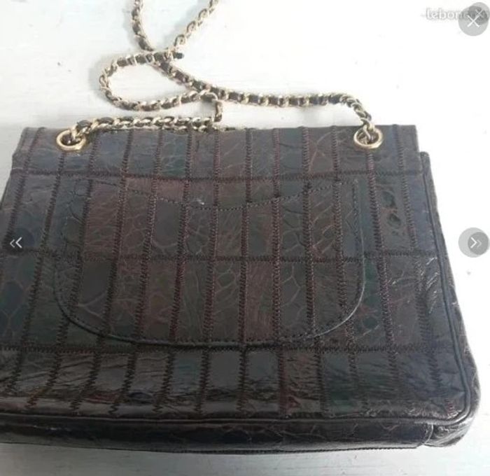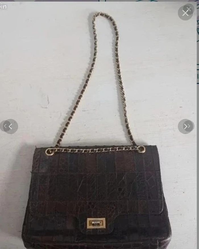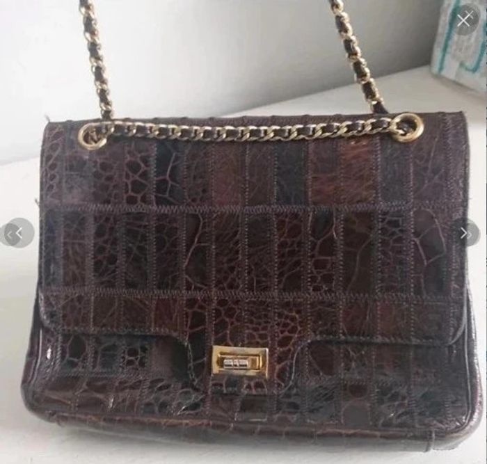 Style 70's Bon état voir très bon état vintage laniere en chaine torsadée dorée Verni croco Un peu élimé en bas a droite mais ne se voit quasiment pas Idee cadeau collectionneur de vintage, cadeau femme, cadeau de noel, cadeau anniversaire, cadeau saint valentin, cadeau fetes des meres