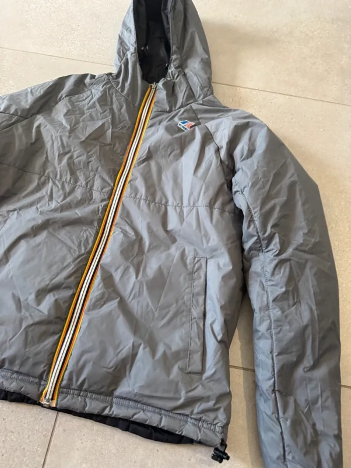 Blouson réversible K way gris et noir, taille M, bon état mais il y a quelques traces - photo numéro 2