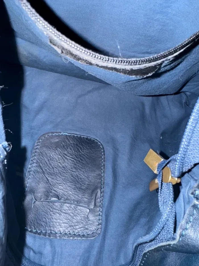Sac à bandoulière en cuir navy, bon état 36x30cm - photo numéro 6