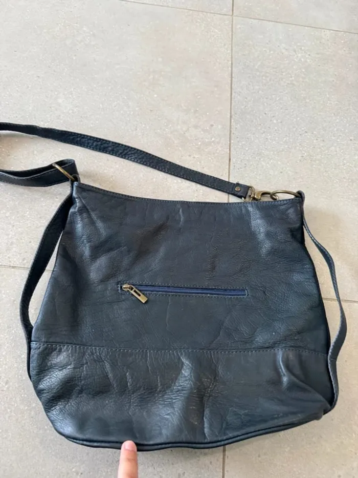 Sac à bandoulière en cuir navy, bon état 36x30cm - photo numéro 1