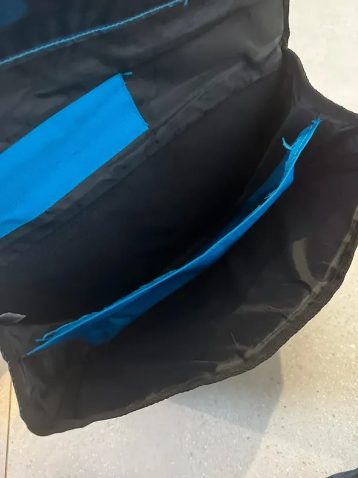 Cartable bleu, il y a une trace de cutter à l'avant, 40x30cm - photo numéro 3