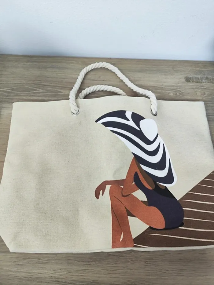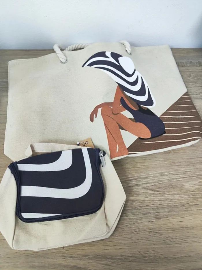 Sac fourre tout beige avec petite trousse, très bon état, 52x35cm - photo numéro 1