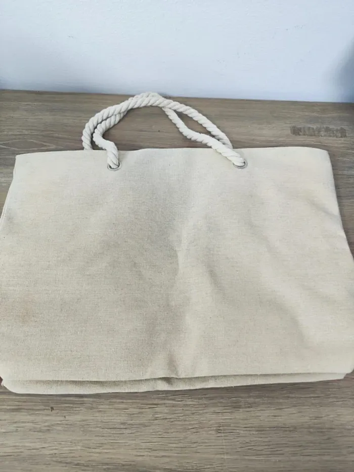 Sac fourre tout beige avec petite trousse, très bon état, 52x35cm - photo numéro 6