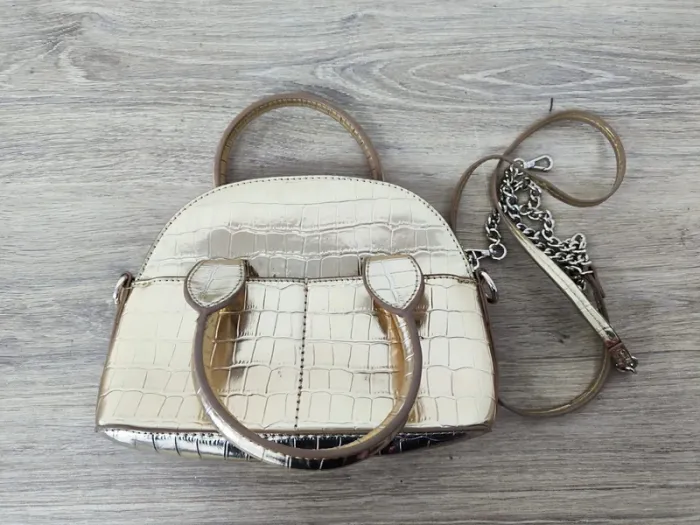 Sac à main et bandoulière doré Zara, très bon état général il y a juste une toute petite trace rose en dessous pas gênante , 21x16cm (mv1542)