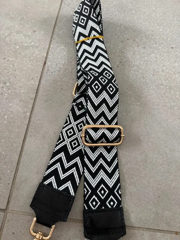Bandoulière blanche & noire, neuve, 80cm - photo numéro 2