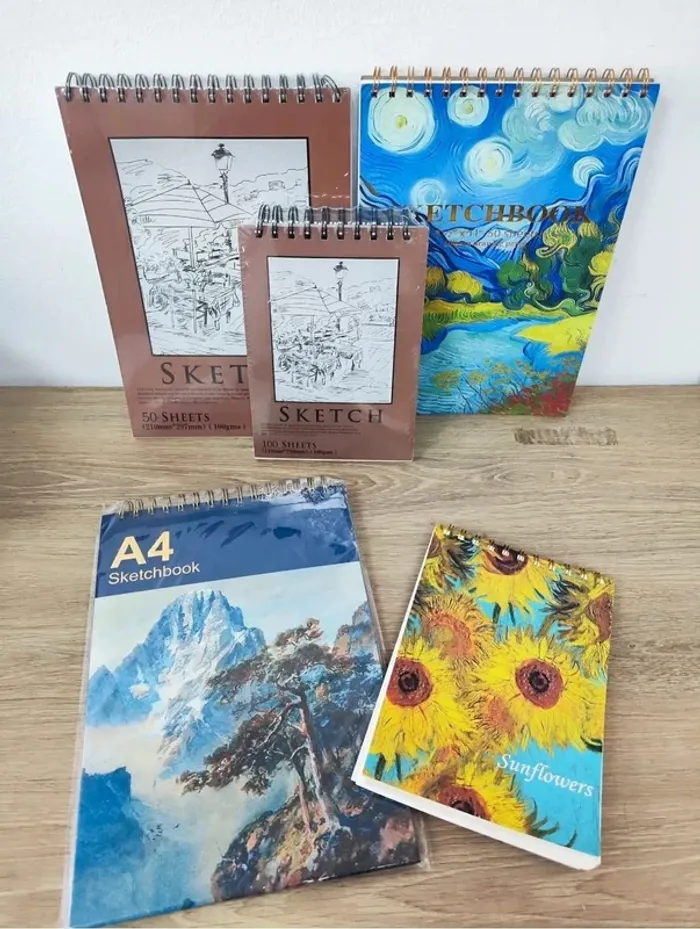 Lot de 5 cahiers pour peinture dessins feuille de 100 grammes 3 au format A4 et 2 en A5 - photo numéro 1