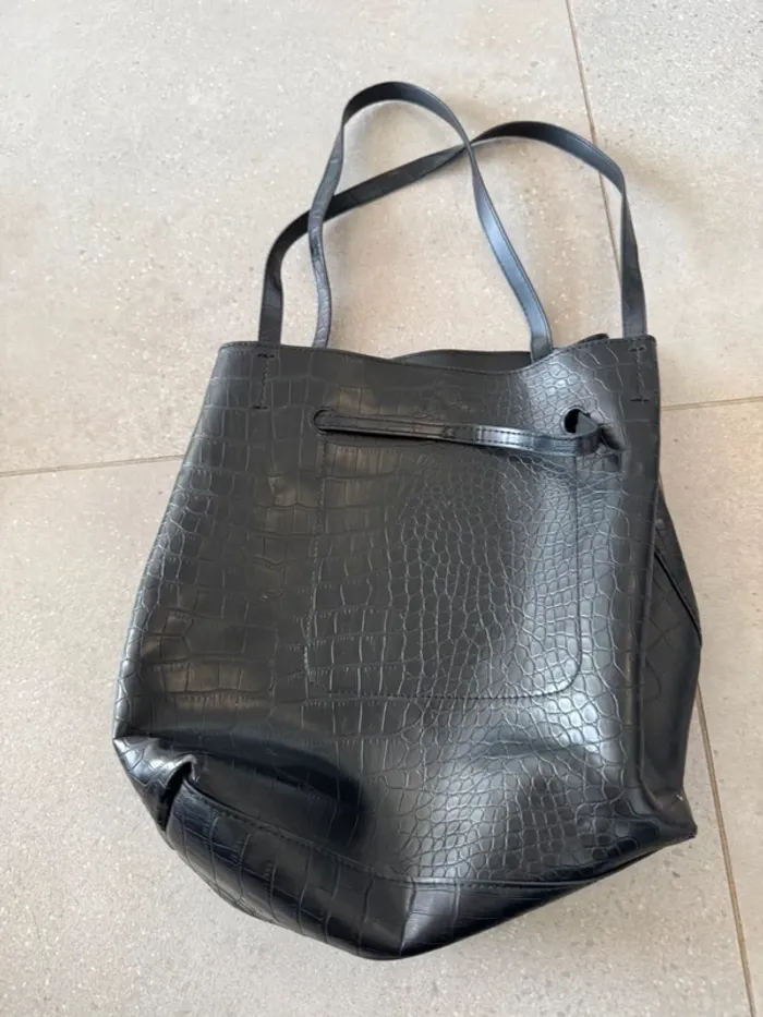 Sac fourre tout noir H&M, bon état mais il y a des marques d'usures dans les coins, 26x30cm - photo numéro 1