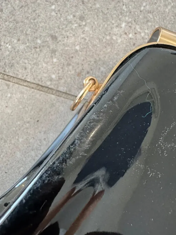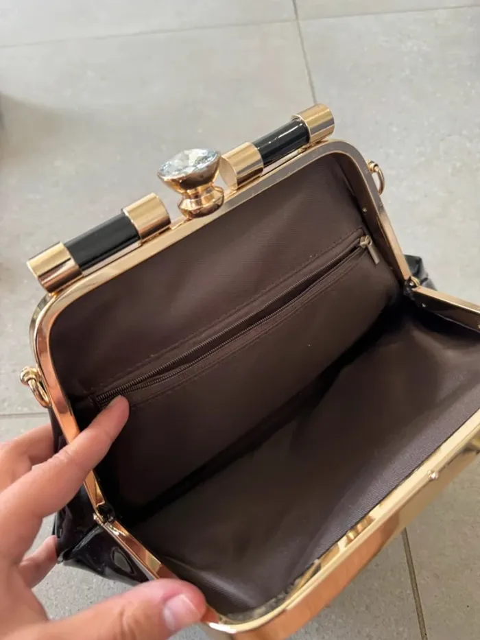 Pochette noire il manque la bandoulière, bon état mais il ya des marques d'usures 30x19cm - photo numéro 5