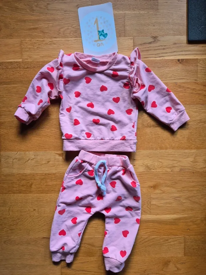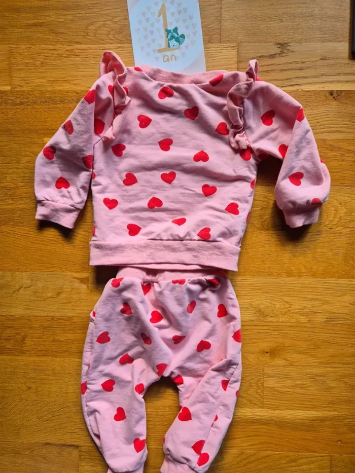 Ensemble pull + pantalon Taille notée 6-12 mois (correspond plutôt à du 1 an) Très bon etat car peu porté
