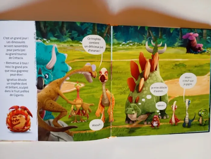 Aujourd'hui a lieu le grand tournoi de Crétacia. Les dinos font équipe deux par deux et Bill se retrouve avec Cror, la raptor, qui entend bien gagner... en trichant ! Ce qui n'est pas du tout du goût de Bill. Mais lorsqu’arrive l’ultime épreuve et dernière chance de remporter le tournoi et le délicieux jus d’ananas qui les attend, le petit gourmand se laisse finalement convaincre. Sauf que leur ruse pour gagner va mettre en danger les autres dinosaures… Éditeur ‏ : ‎ Larousse 32 pages Âge de lecture ‏ : ‎ 3 - 6 ans Dimensions ‏ : ‎ 21 x 1 x 21 cm Livre en excellent état Je vends d'autres livres de la même collection #phil_peg_gigantosaurus ou sur les dinosaures #phil_peg_dinosaures #dinosaure #gigantosaurus