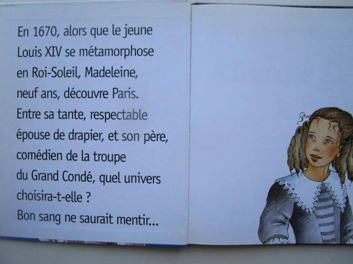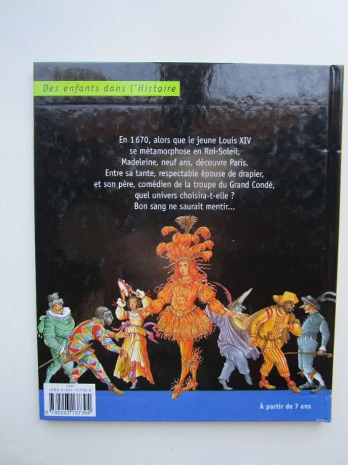 En 1670, alors que le jeune Louis XIV se métamorphose en Roi-Soleil, Madeleine, neuf ans, découvre Paris. Entre sa tante, respectable épouse de drapier, et son père, comédien de la troupe du Grand Condé, quel univers choisira-t-elle ? Bon sang ne saurait mentir... Éditeur ‏ : ‎ CASTERMAN 46 pages Âge de lecture ‏ : ‎ 6 - 9 ans Dimensions ‏ : ‎ 21.6 x 0.8 x 25.8 cm Livre en très bon état Je vends d'autres livres de la même collection #phil_peg_journaldenfant #histoire #enfant #molière #roisoleil #louisXIV