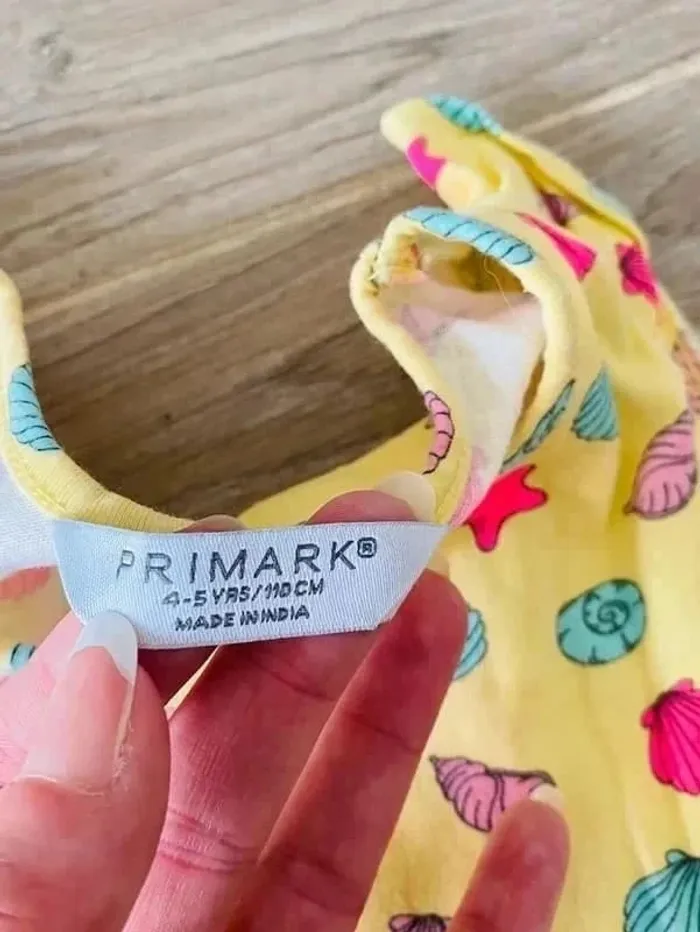 Motif coquillages rose bleu lilas Base Jaune Primark Taille 4/5 ans