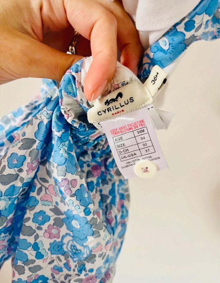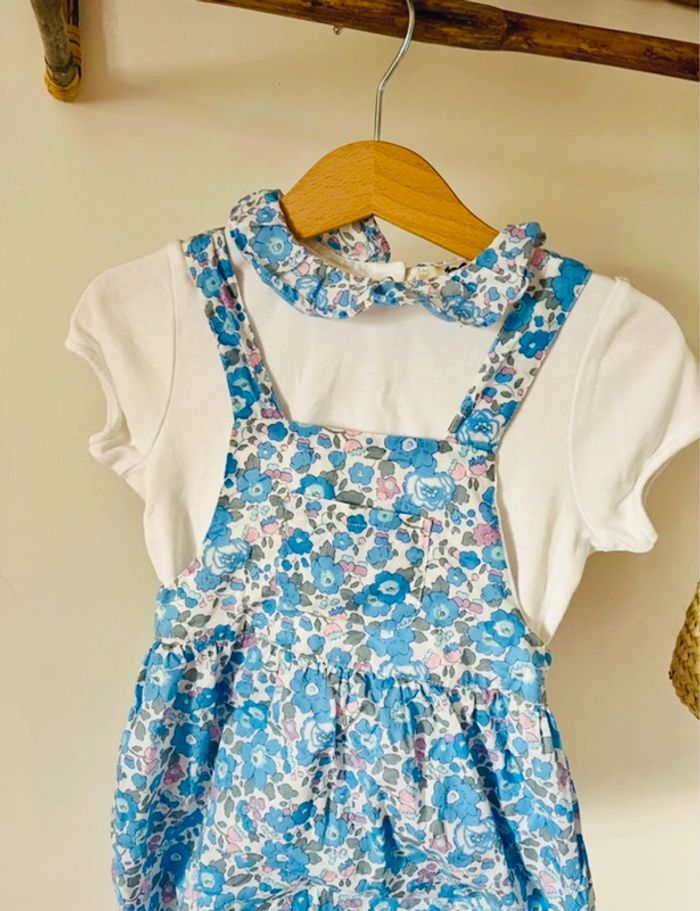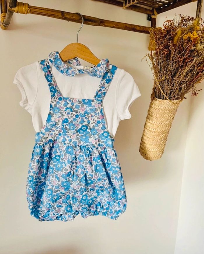 Ensemble Cyrillus 36 mois T Shirt à col + combi short Liberty layette Neuf porté 1 fois