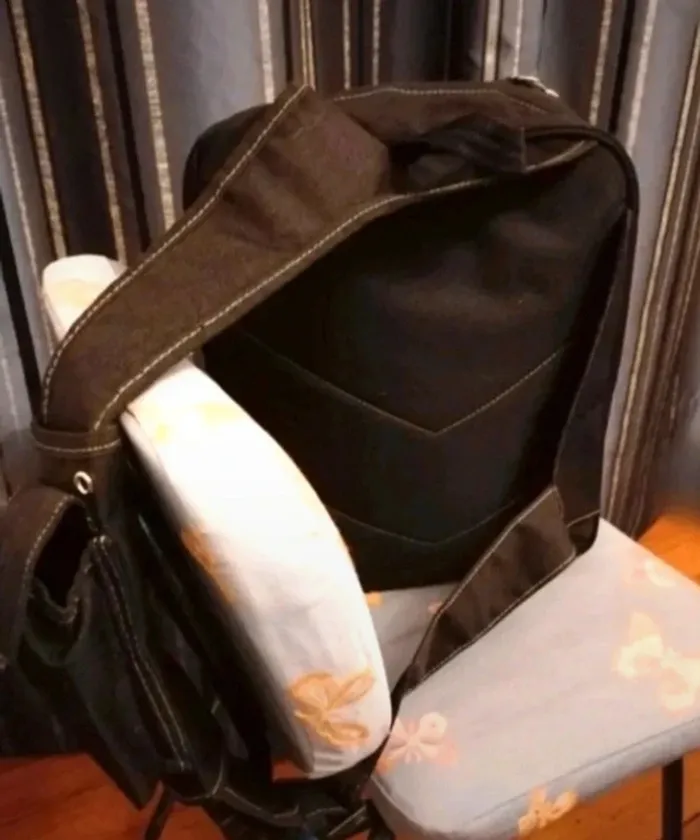Sac à dos Rica Lewis noir monobrettelle 33x38 cm, deux compartiments, nombreuses poches, porte-téléphone sur la bretelle amovible, compartiment pour notebook, très bon état.