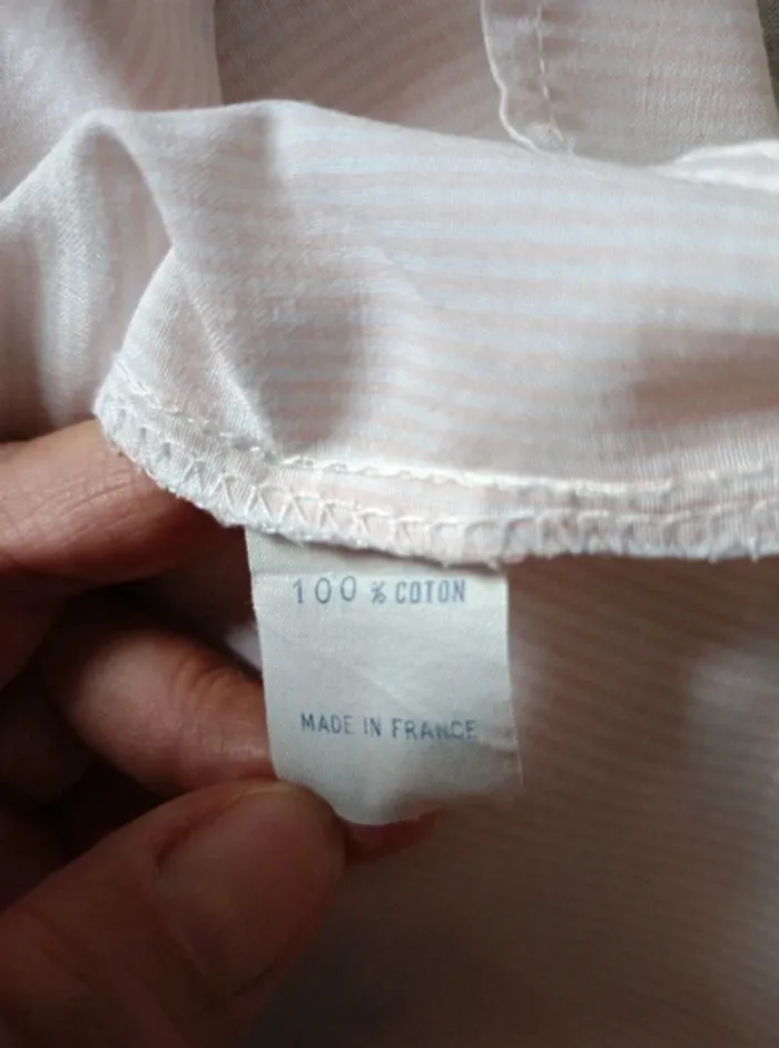 Tous mes articles sont triés par les tailles. Découvrez mon dressing et créez le lot pour économiser sur les frais de port. #vetfem_lisa_46 Chemise vintage Al'Son 100% coton, rayures blanches et rose pâle t.46 épaules 51 cm aisselles 62 cm longueur 62 cm Fabriqué en France