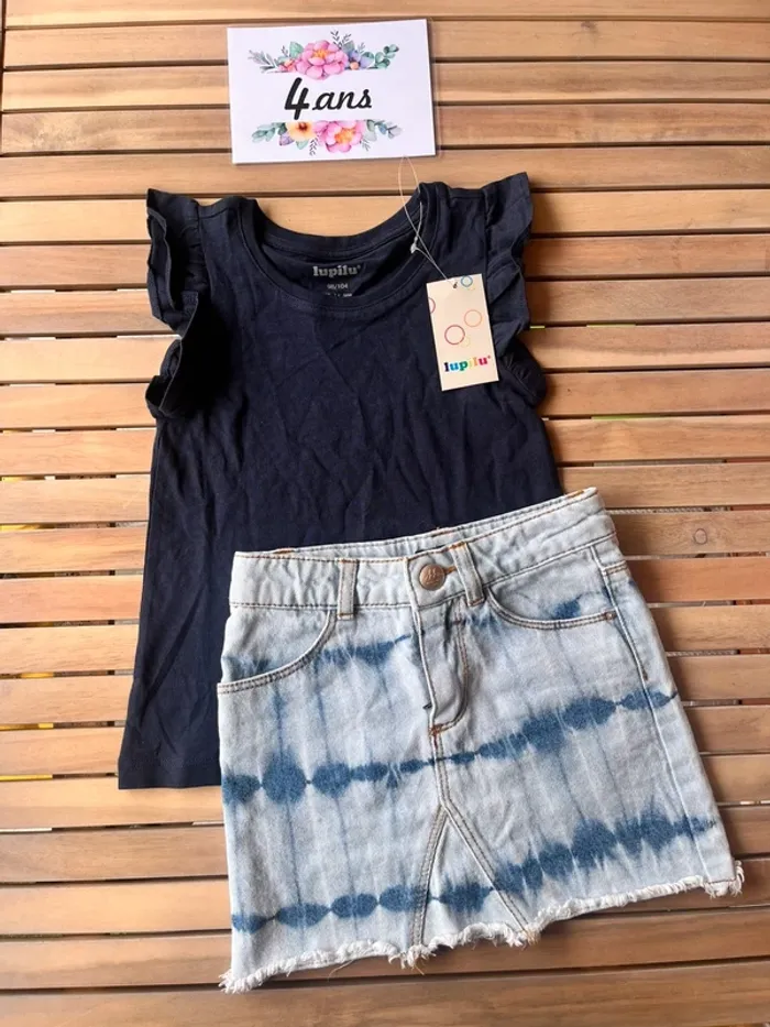 Jupe en jean ikks Teeshirt lupilu neuf