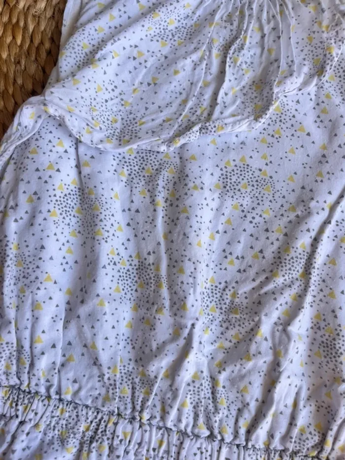 Robe légère blanche à motif gris et jaune Resserrée à la taille avec petit noeud argenté