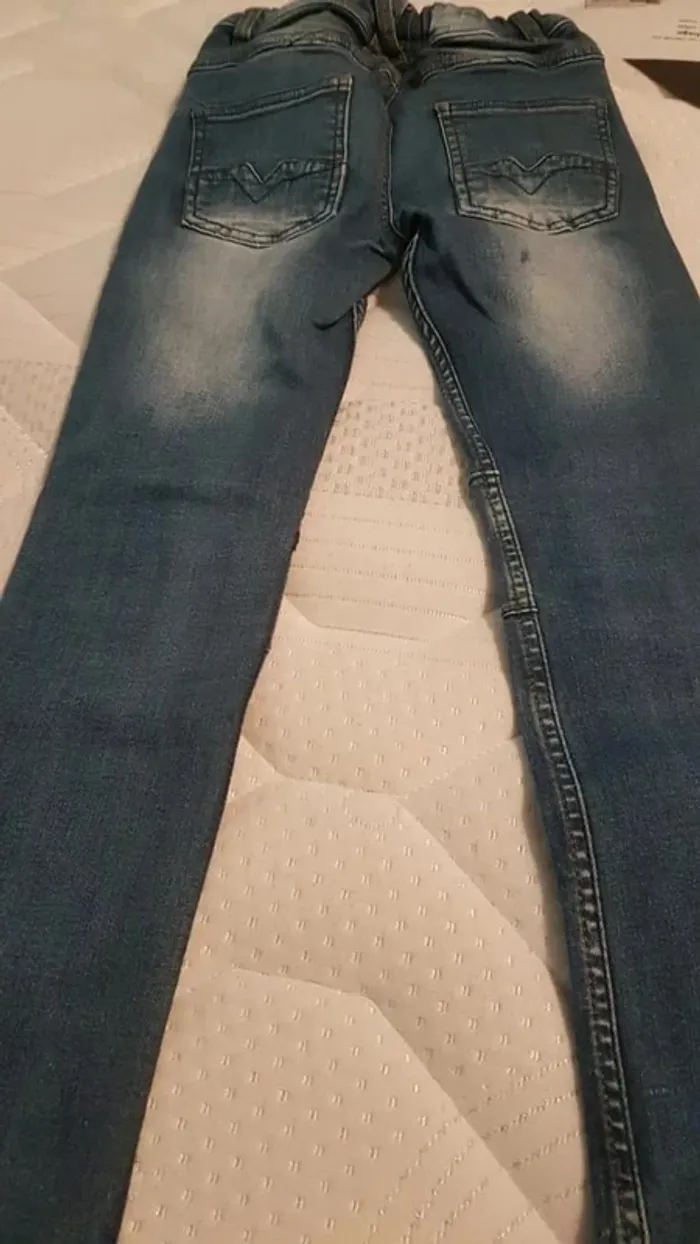 Jean slim Vertbaudet. Couleur bleu avec aspect "délavé" aux genoux et derrièretaille réglable par élastique Taille 8 ans. Bon état #33coco_garçon8ans