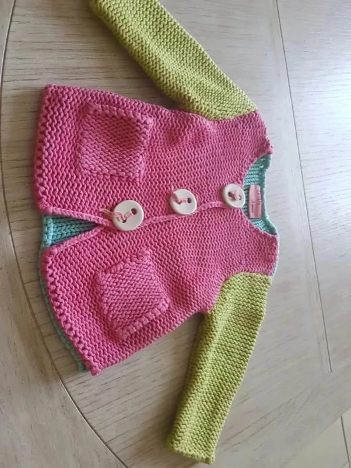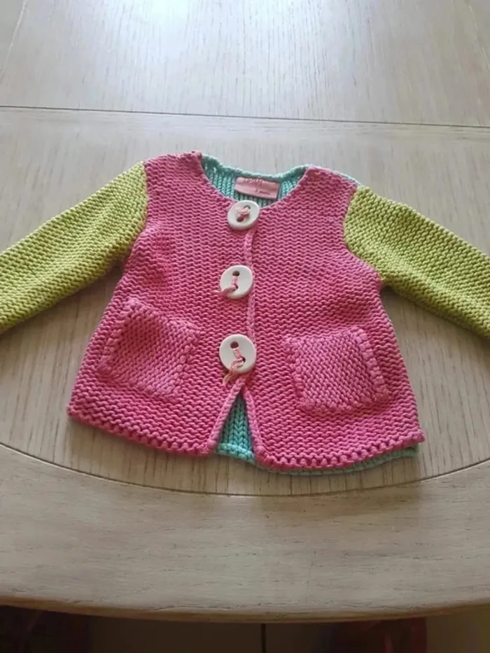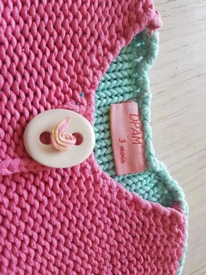 Gilet fille taille 3 mois. Marque DPAM, Du Pareil au Même. Rose-vert-bleu. Très bon état #33coco_fille3mois