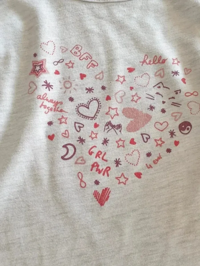 Tee shirt manches longues In extenso Blanc chiné avec inscriptions colorées en forme de coeur (BFF). Taille 8 ans. Très bon état. #33coco_fille8ans