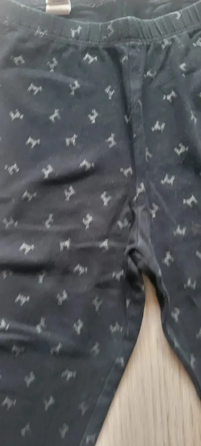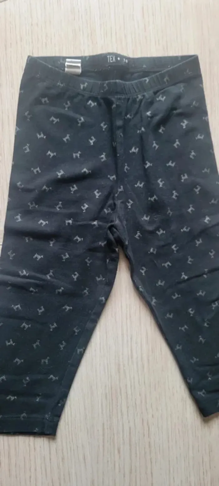 Leeging court fille Tex. Noir avec motifs "têtes de chien" Taille 7-8 ans. Sera repassé avant envoi. Très bon état #33coco_fille8ans #33coco_fille7ans