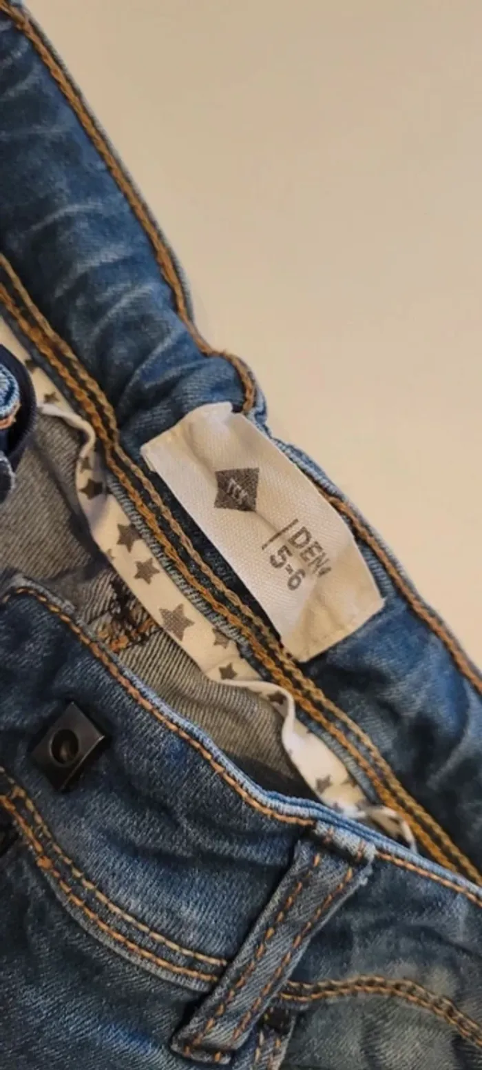 Short en jean Tex fille. Taille 5-6 ans. Fermeture par accroche et taille réglable par élastique. Très bon état #33coco_fille6ans