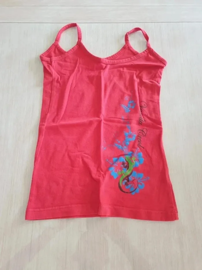 Débardeur fille rouge avec motifs lézard et fleur. Taille 6 ans Très bon état #33coco_fille6ans